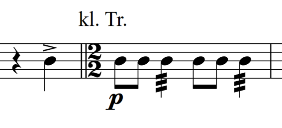 The manuscript indicates 1 Triangel. Both the conductor´s score and the vocal score indicate Triangolo in Italian, which is a perfect translation that presents no problem whatsoever.